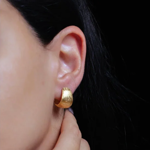 Elevate your everyday style with our Cleo earrings. Crafted from sterling silver and coated in lustrous gold, these earrings feature a sand finish for a touch of sophistication. Perfect for any occasion, day or night.
