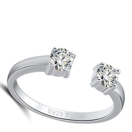 Dainty is an adjustable ring that showcases a refined design with a sparkling diamond cubic zirconia stone at each end. Crafted for comfort and elegance, this ring offers a modern take on classic beauty, allowing you to find the perfect fit. The delicate band highlights the shimmering stones, making it an ideal accessory for layering or wearing alone for a subtle statement.