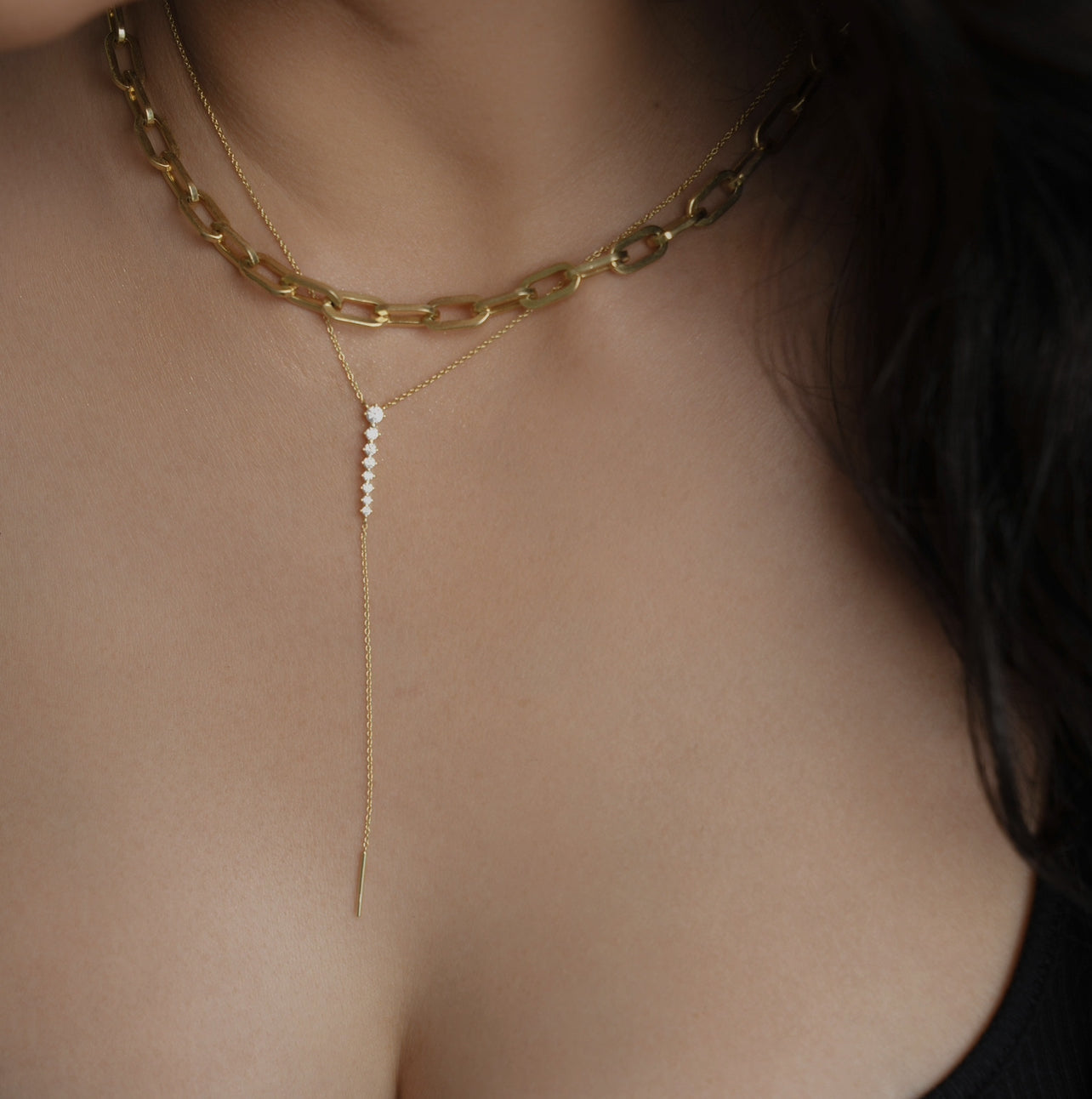 Maia a thin delicate lariat bar necklace is a beautiful blend of simplicity and elegance. Featuring a sleek bar that gracefully drapes down the neckline, this necklace adds a touch of modern sophistication to any outfit. Maia is perfect for layering with other pieces or wearing alone for a subtle statement. Its minimalist design makes it an ideal accessory for both everyday wear and special occasions.
