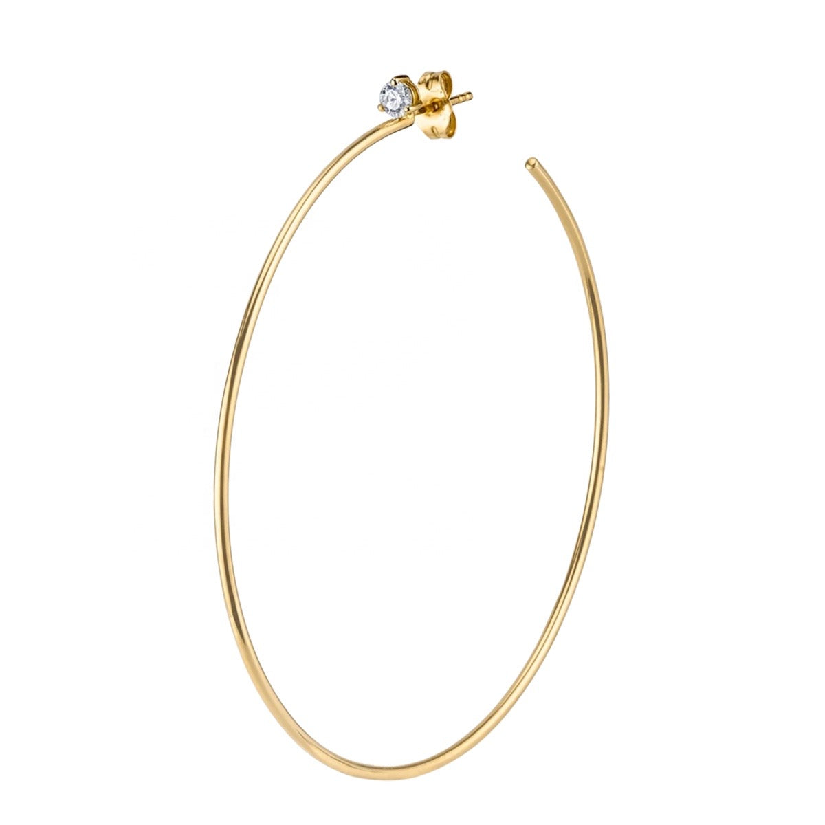 Stunning, our large thin hoops bold yet refined, each accented with a single diamond stud for a touch of brilliance. These elegant, oversized hoops combine minimalism with a hint of sparkle, making them perfect for making a statement while maintaining a timeless appeal.